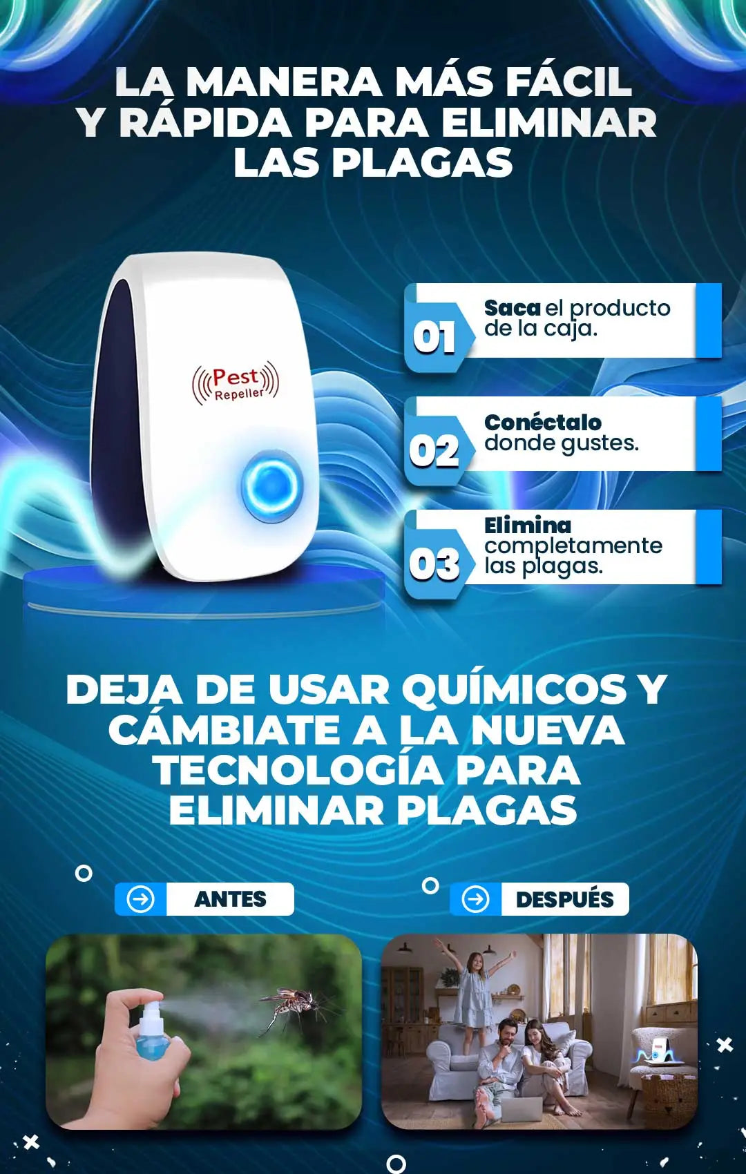 Olvídate de los métodos tradicionales y tóxicos para el control de plagas. Este dispositivo innovador es tu solución no invasiva para mantener la salud  e higiene